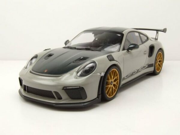 Tauchen Sie ein in die Welt des Motorsports mit diesem atemberaubenden Modell des Porsche 911 GT3 RS (991.2) mit Weissach Package aus dem Jahr 2019, gefertigt von Minichamps im Maßstab 1:18. Dieses Modell ist nicht nur eine Miniatur, sondern eine Hommage an die Ingenieurskunst und das Design, die den GT3 RS zu einer Legende gemacht haben. Die Lackierung in dem eleganten Kalkgrau, kombiniert mit den goldenen Akzenten, verleiht diesem Sammlerstück eine unvergleichliche Exklusivität.