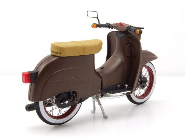 Die Liebe zum Detail zeigt sich auch in den kleinen Dingen: Die Sitzbank ist originalgetreu nachgebildet, die Instrumente sind gut lesbar und die Chromteile glänzen edel. Dieses Modell ist nicht nur ein Blickfang in jeder Sammlung, sondern auch ein ideales Geschenk für alle Zweirad-Enthusiasten und Simson-Liebhaber.